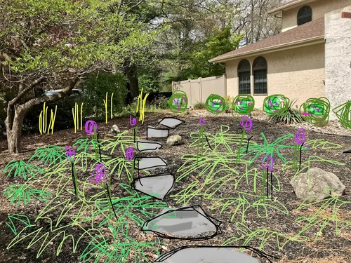 A quick study, this project explored infilling ornamental grasses within an existing planting bed along a residential property’s border and sidewalk. Using sweeps of bold green, blue, and pink warm season grasses, proposal envisions and strengthens the aesthetic potential and ecological function of highlighted planting bed. Installation forthcoming!
